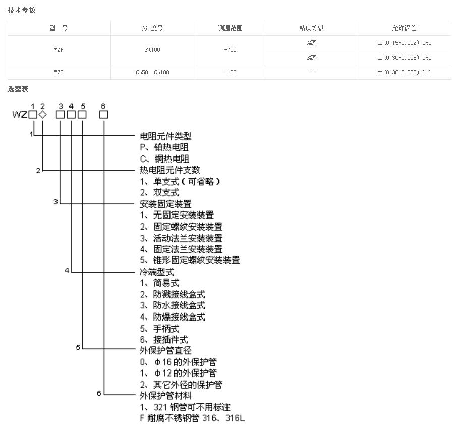 WZP/WZC系列热电阻